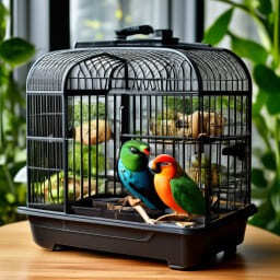 - ✅ Гнёзда и уютные домики из натуральной древесины, создающие идеальные условия для жизни вашего питомца.